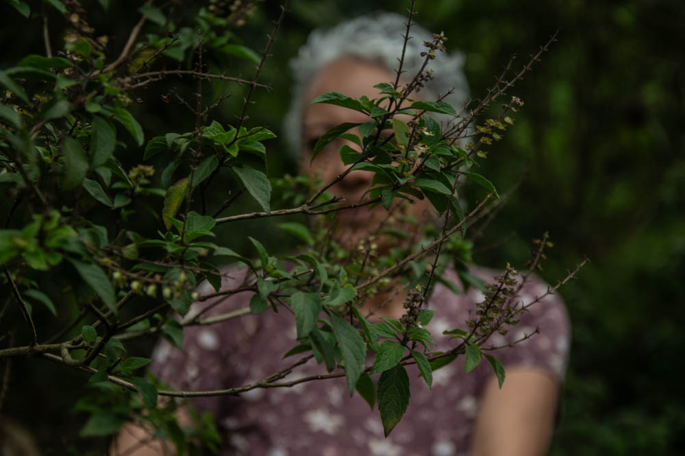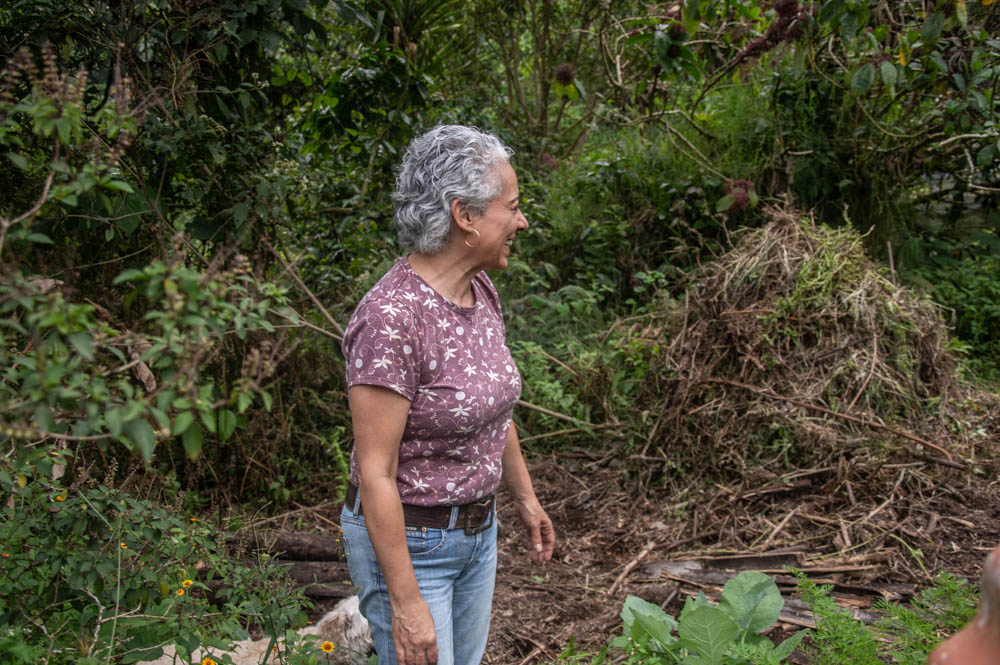 «Hay otros roles que han ido asumiendo ya a nivel comunitario [las mujeres]. Y es ese rol de liderazgo desde las juntas de acción comunal, desde las asociaciones, por ejemplo, aquí en Santa Rosa hay una asociación que es la Asociación de Mujeres Campesinas, AMMUCAMP. Y desde ese momento en que uno llega, como profesional, uno empieza a darse cuenta que hay muchas cosas que se pueden aportar desde la experiencia de uno, desde la experiencia profesional, la experiencia de vida, la experiencia de trabajo con instituciones, el mismo conocimiento». Susana confiesa que su llegada a los roles de liderazgo comunitario no se da de manera inmediata. Su discurso es acompasado, serena, y en todo momento no deja que ninguna emoción fuerte la altere mientras relata su experiencia en el ámbito comunitario. La escena se construye como un ritual, con sus ajuares, las prendas de Susana, su collar y todo lo que tiene su finca invitan a un ritual. Las palabras envuelven el ambiente y ella continúa.